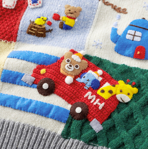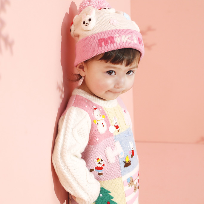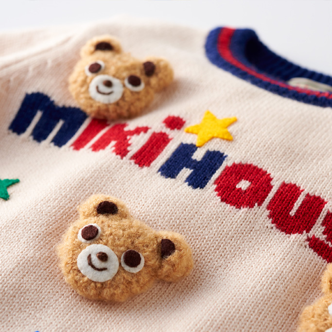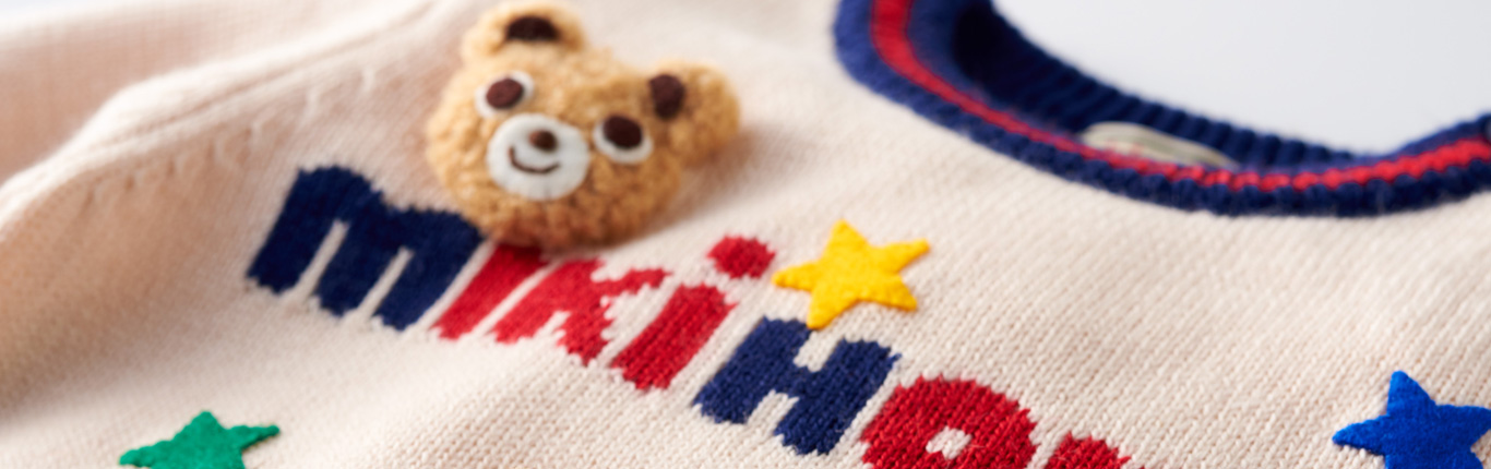 “There are three key points that I learned to take care for in creating the MIKI HOUSE knits: that there is no scratchy feeling when wearing the knit; that each item is clean and colorful in the MIKI HOUSE style; and that, since each product is for children, it is easy to launder. No matter how cute or outstanding the design in the sweaters and knit caps, if the fabric is scratchy or itchy when the child wears it, it becomes stressful for them.”
