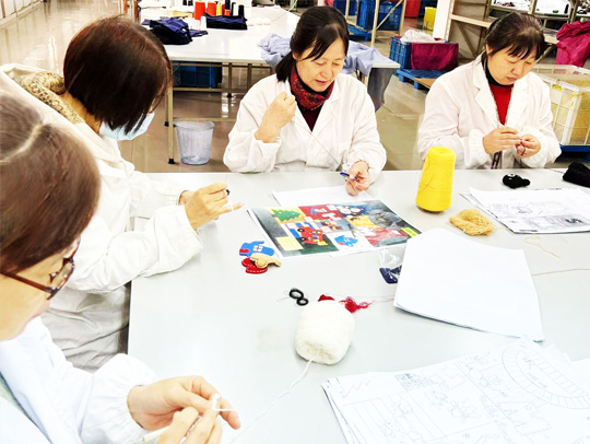 There is also another issue that needed to be overcome: how to create a product that was easy to clean by hand at home while staying true to the MIKI HOUSE design and beautiful colors. Thanks to the knowledge and experience of Hanano and Sone, they found their solution in a wool and acrylic blended fiber.