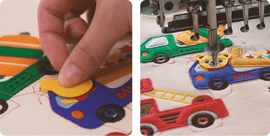 Printing and embroidery are important factors in the creation of the lively “MIKI HOUSE Style” that customers have come to love in our children’s clothing.