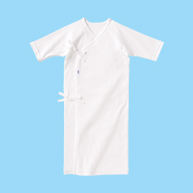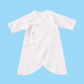 In addition to the arranging type of underwear, the "pullover" type or the "cardigan" type of clothing with buttons in front, similar to the underwear that is worn by adults, is also used for newborns in many countries around the world. The "pullover" type is designed with a widely open part so that the head and both shoulders can pass through it easily. Because a newborn's neck and sitting posture become more flexible and it is easier to change clothing from about the age of 4 months, "the pullover" type of underwear is also convenient.