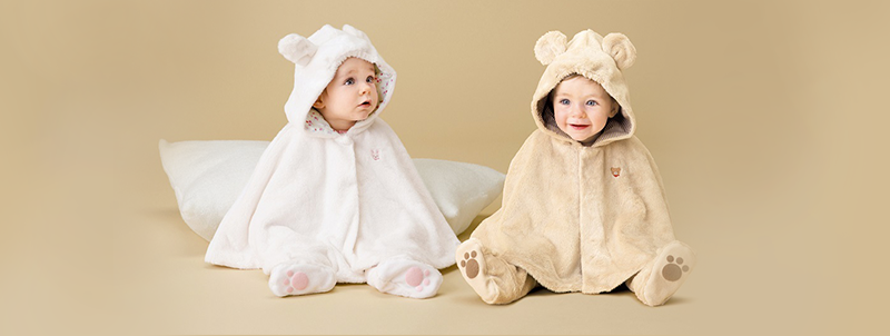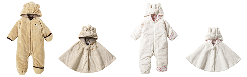 The micro-fur series also excels in functionality. The inside of the clothing that touches baby's skin is made of cotton, wicking away any sweat.
