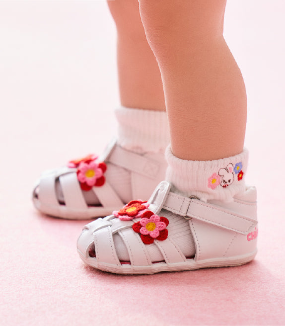 Chieco went to a flower field to look for clovers, swinging her fluffy tail.