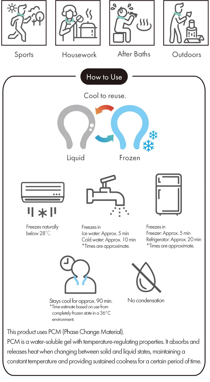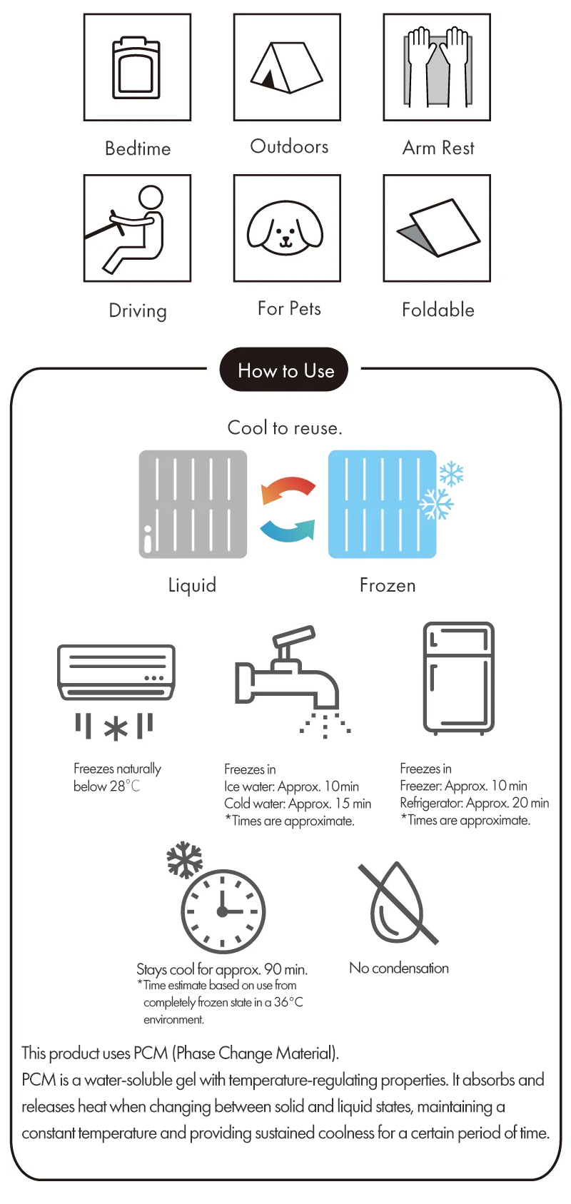 - Ice crystals may occasionally form on the surface of the product. Please wipe them off before use. This does not affect the product's functionality or your body.