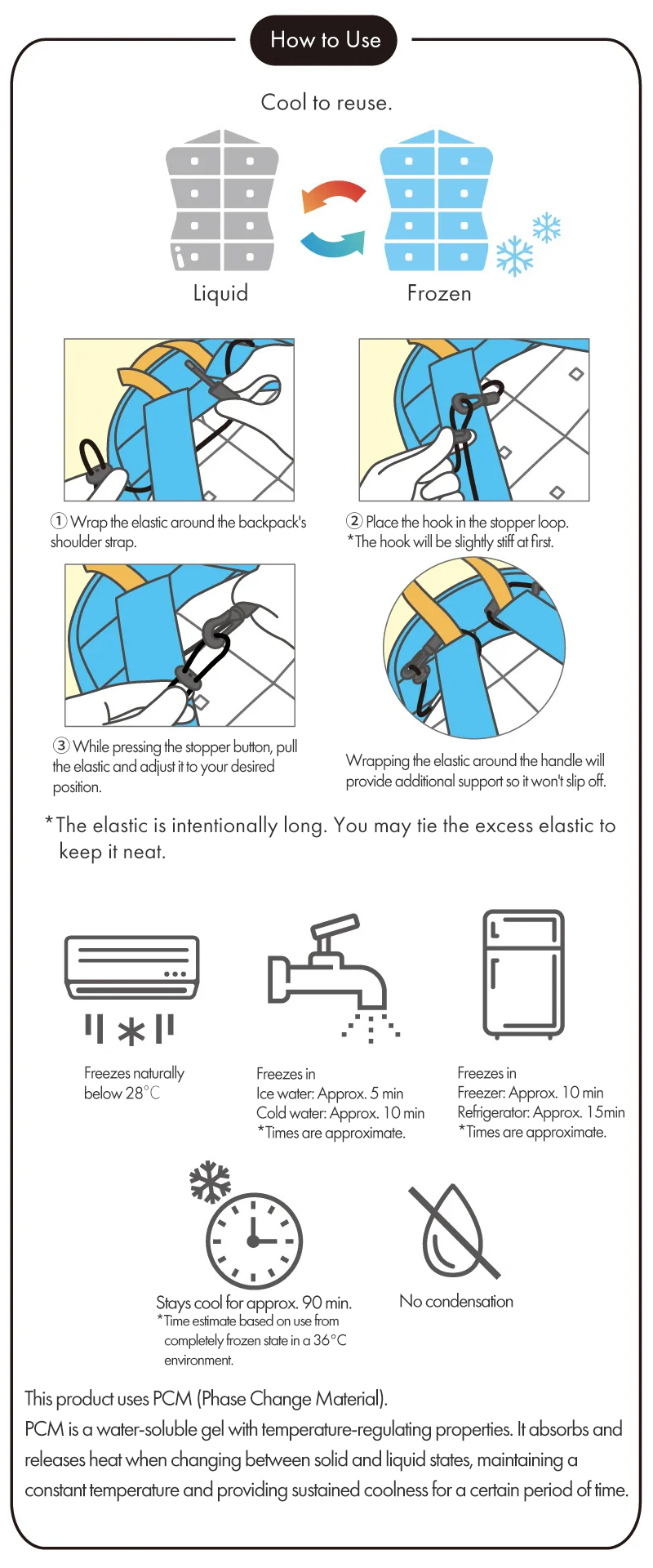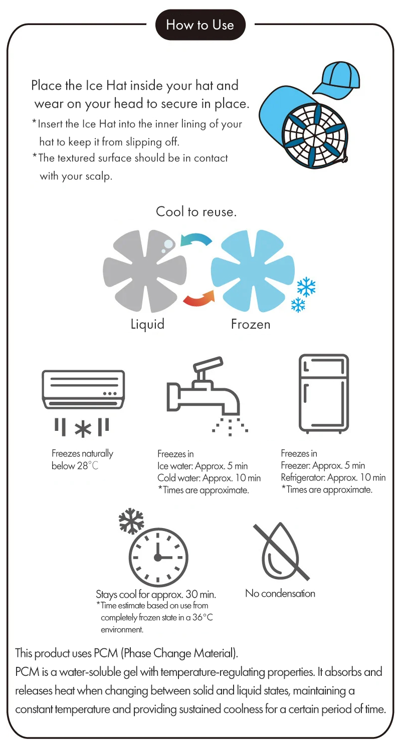 Attach it to your hat to cool down. A cooling item for your hat that can be used by both children and adults.