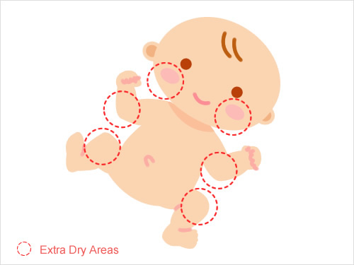 The outermost layer of baby skin has significantly less sebum and moisture than adult skin(*). Because of this, areas such as the cheeks, elbows and knees are very susceptible to dryness.