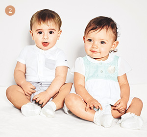 首先请选择一件贴身内衣,或者可以选择不必担心肚子着凉的连体包屁服。面料可以选择清爽的平纹针织棉或者透气性好的网眼状的纯棉材质。正因为夏季出汗量大,尽量要给宝宝穿上贴身内衣,起到吸汗作用。