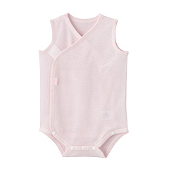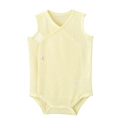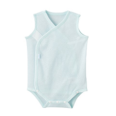 首先请选择一件贴身内衣,或者可以选择不必担心肚子着凉的连体包屁服。面料可以选择清爽的平纹针织棉或者透气性好的网眼状的纯棉材质。正因为夏季出汗量大,尽量要给宝宝穿上贴身内衣,起到吸汗作用。