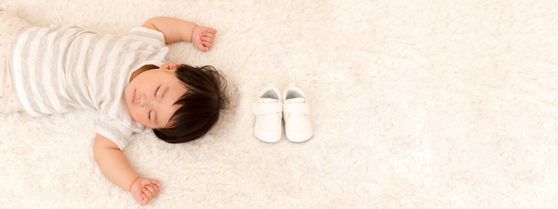 另外,小宝宝的腿看上去有些弯曲,膝盖也朝向外侧,看起来像O型脚,那是因为骨盆和股骨的连接部分还未发育完善。到了小学低年级的时候,膝盖就会朝向正面,脚后跟和胫骨(小腿骨)也会笔直地长在一起了。