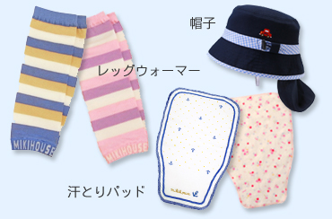 为了使宝宝的娇嫩肌肤免受紫外线的侵袭,夏季外出时,帽子是必备品。MIKI HOUSE的帽子都是具有防紫外线功能的,有些还带有防止脖子被晒伤的盖帘。同时也不妨尝试增添一款护腿套和吸汗垫,这样就可以更加有效的对付紫外线和空调的冷风了。这种将柔软的纱布和毛巾的吸水性集于一体的面料,为呵护宝宝的肌肤提供了极大的方便。