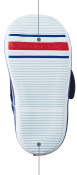 为了让宝宝能够适应第一次穿鞋,鞋底选用了柔软的特殊合成纤维材质。适中的抓地感并且不易打滑,同时,可以向脚底传达赤脚学步的感觉,促进小脚的发育。