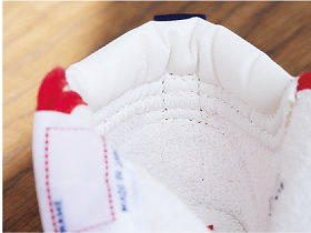 使用舒适度很好的柔软材料。另外,还在鞋口添加了柔软的垫衬。