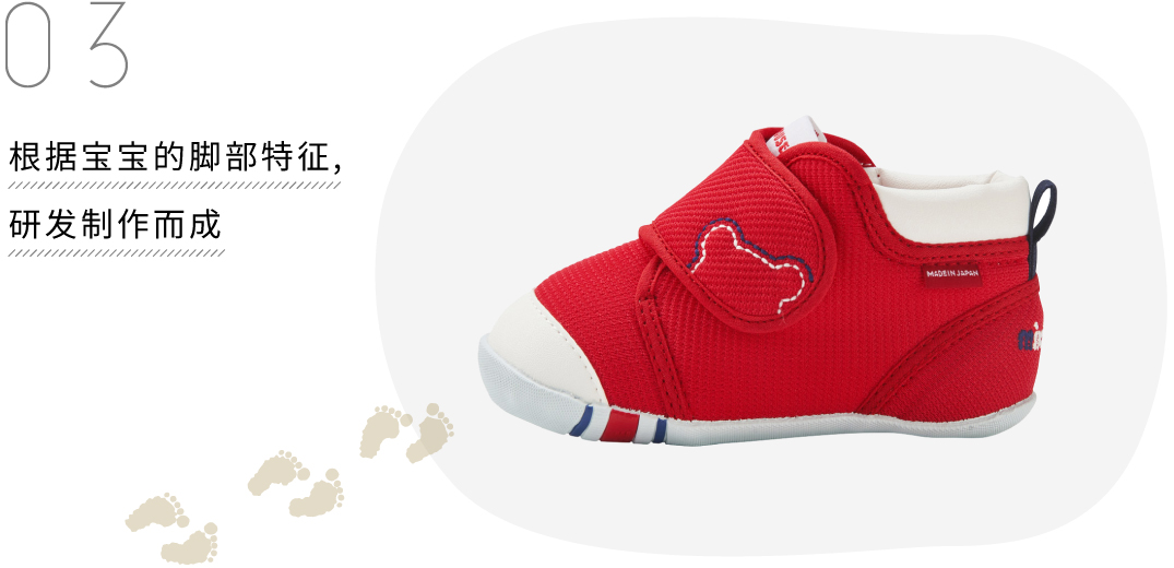 根据宝宝足部的构造,充分考虑舒适度以及功能性,严格选取制作素材。