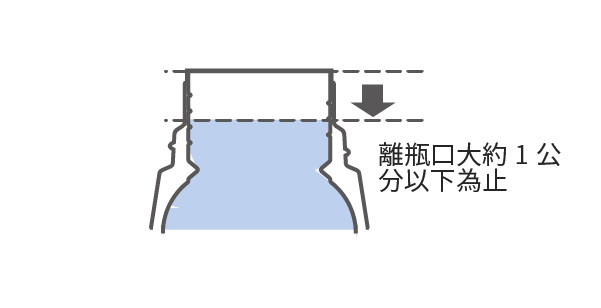 ※出水口周邊和中栓內部有可能會殘留水滴, 請不要將瓶身橫放。