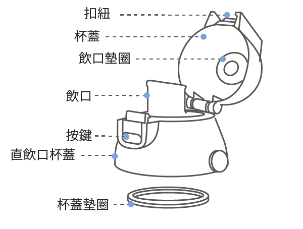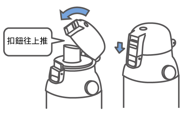 ※請將扣鈕往上推以後再蓋杯蓋, 否則杯蓋無法蓋上。