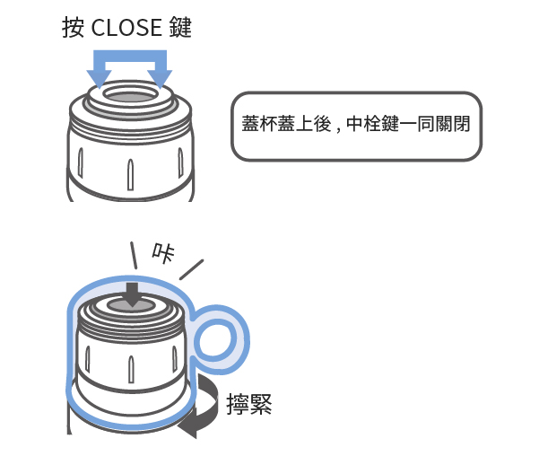 ※倒完水以後, 請關閉中栓按鈕, 避免保溫保冷效果下降。
