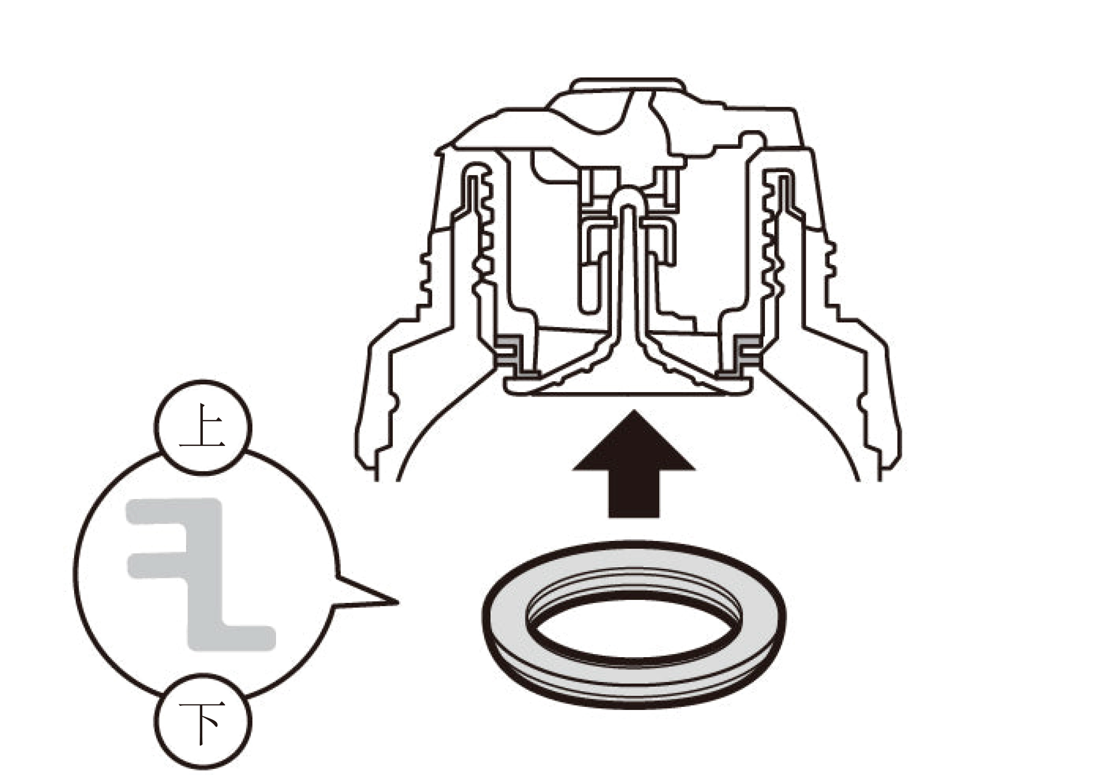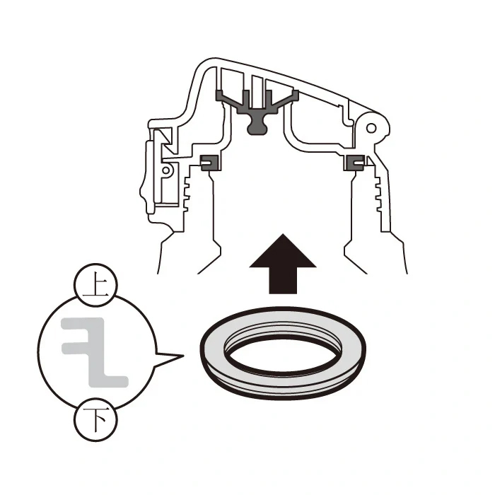 - 請確認上下位置,並正確安裝,安裝後,用手指均匀按壓,確保墊圈未翹起。