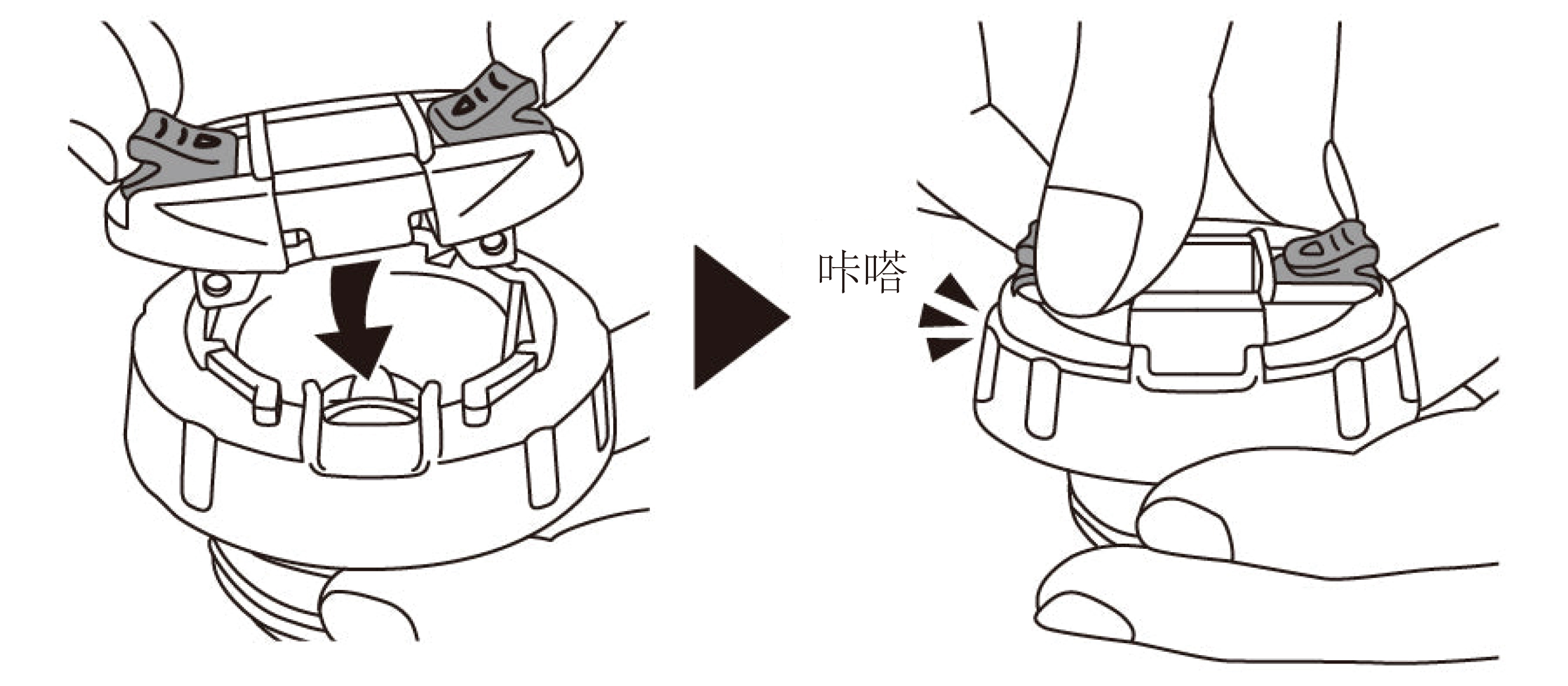 請保持杯體直立的情况下,沿箭頭的方向轉動擰緊。