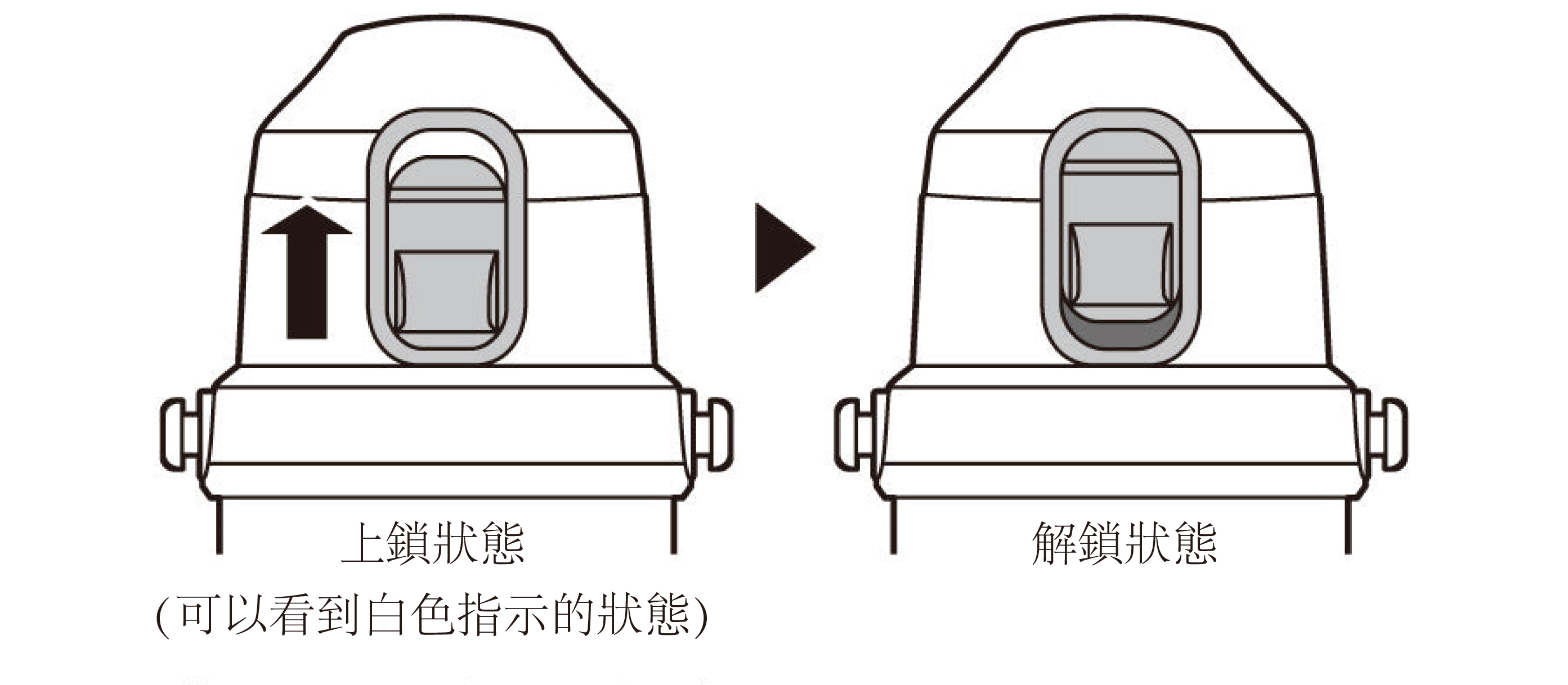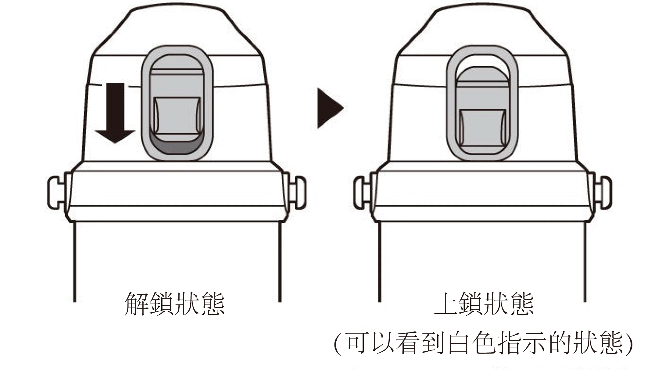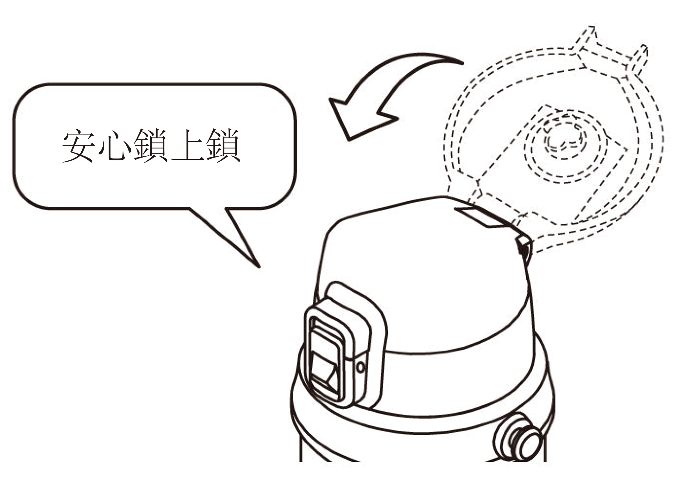 關閉杯蓋前,請確認安心鎖已處於解鎖(上方)位置。