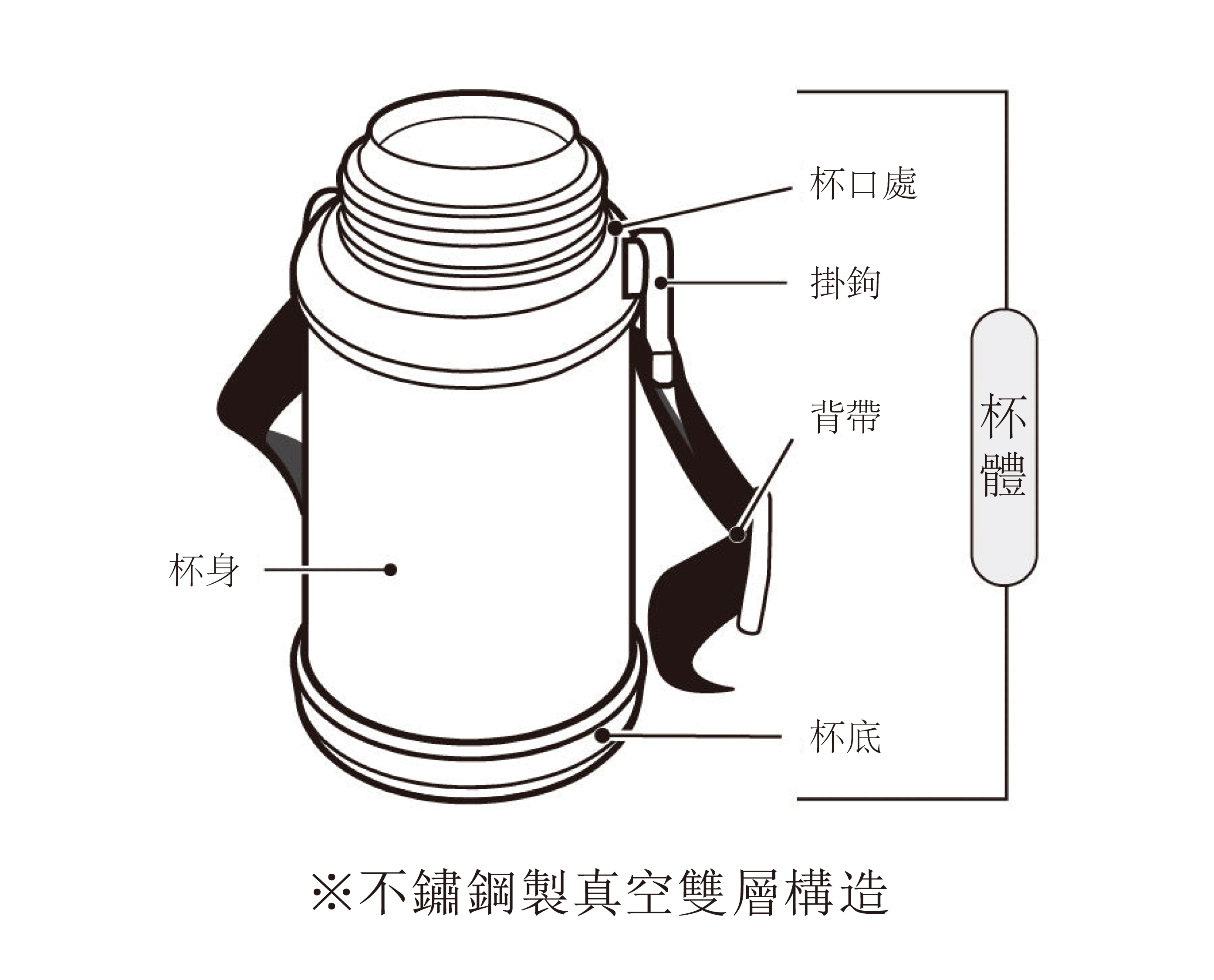 - 放入背包等時,請將杯體部分朝上,保持直立,以防漏水。