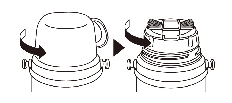 請保持杯體直立的情况下,沿箭頭方向轉動擰緊。