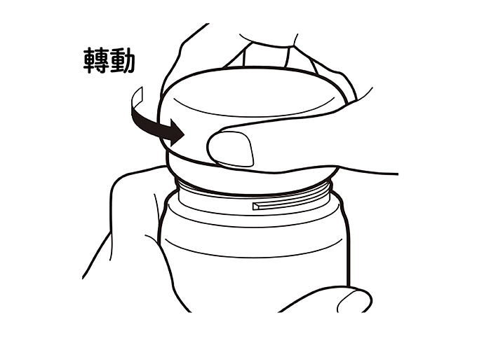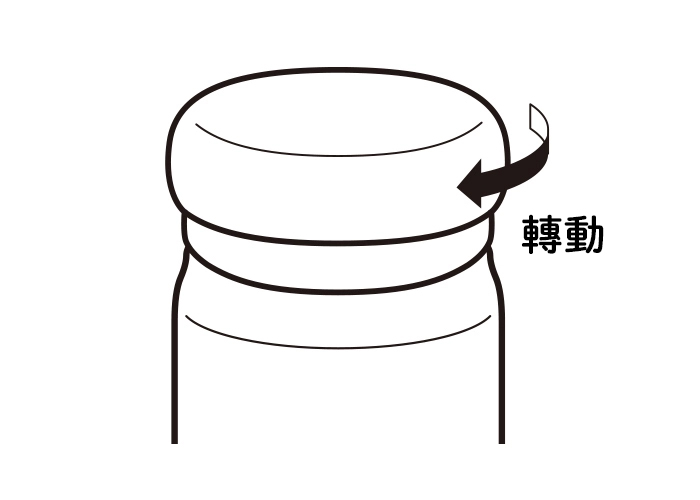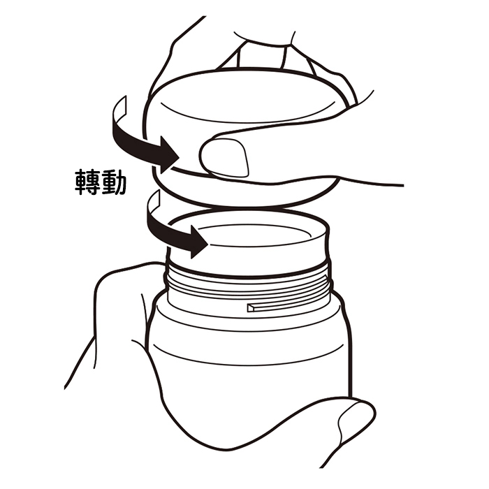 - 在杯體直立的情況下,握住杯體並按箭頭方向轉動杯蓋開啟。