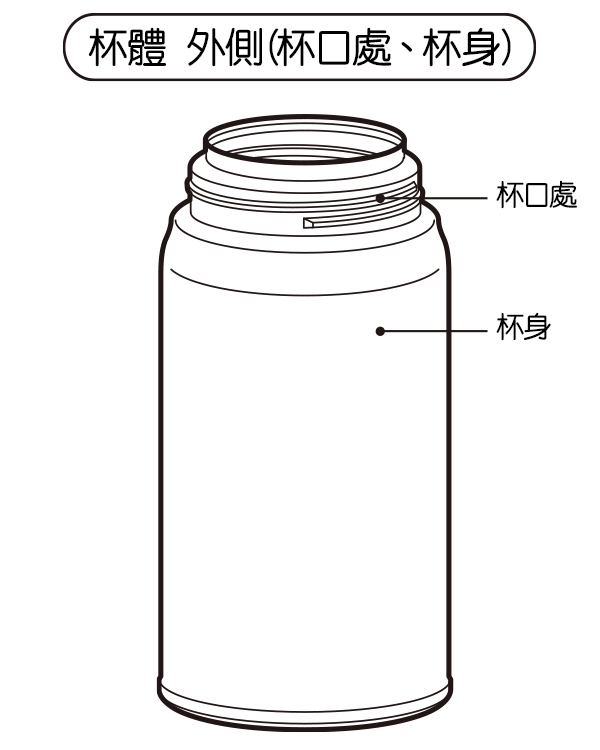 - 請勿將瓶身長時間浸泡在水裡。可能會導致生鏽或保温、保冷效果不佳等情况。