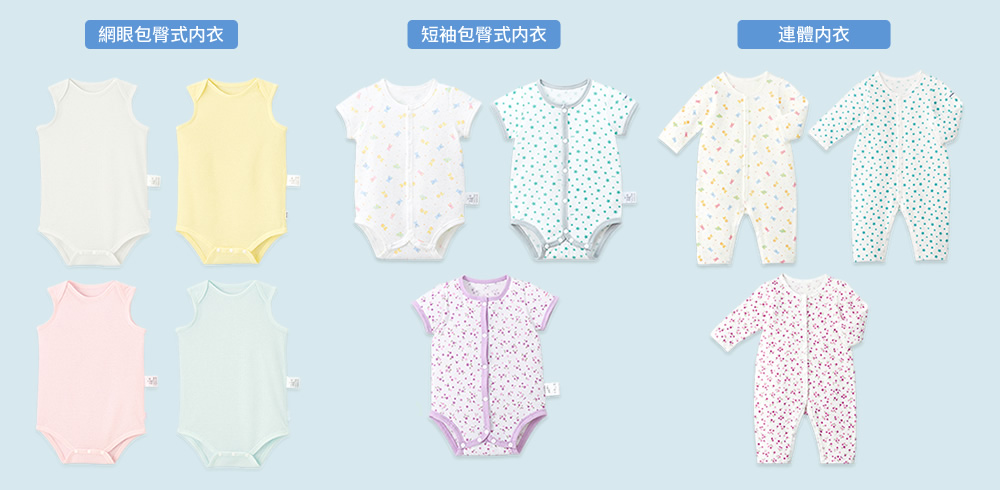 以寶寶穿著舒適度為第一考量,根據不同季節準備了三種不同材質。