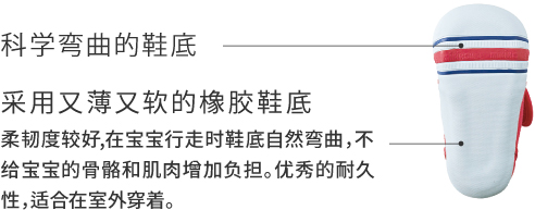 柔韌度較好,在寶寶走路時,鞋底自然彎曲,不给寶寶的骨頭和肌肉增加負擔。