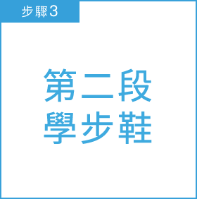 開始走路之後,跑,跳等動作會更加活躍,行動範圍也隨之擴大。第二階段的學步鞋,要在保護脚不受運動衝擊的同時,支持正確的走路方式。並且可以促進足弓的形成。